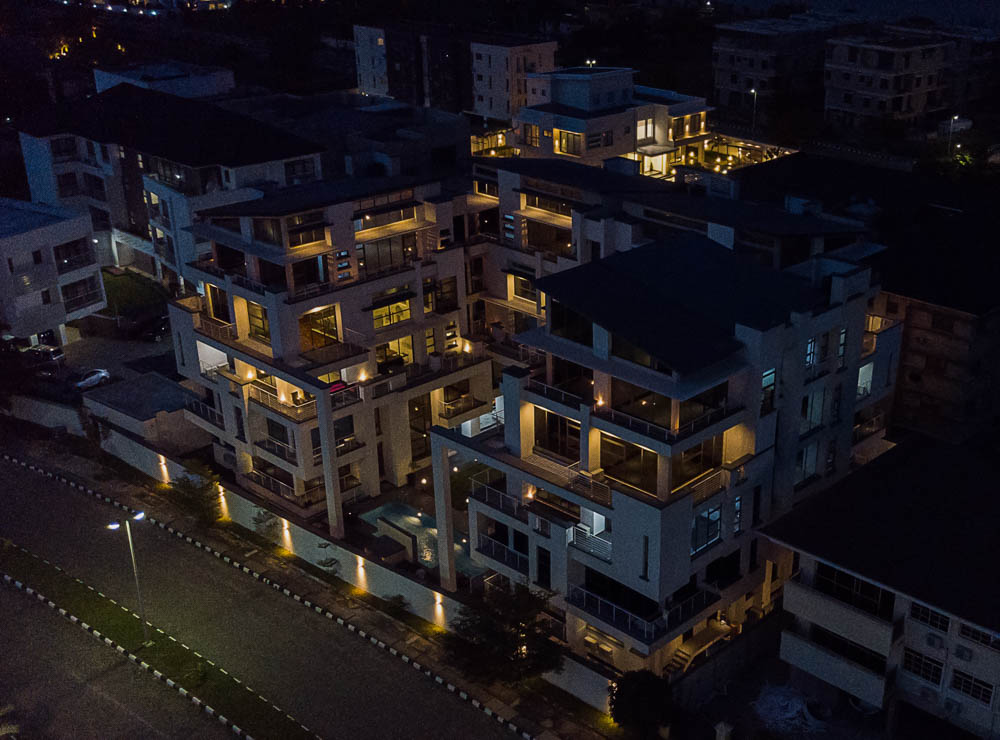 A residential development of a block of 12 units duplexes with underground parking lots for 30 cars. It is located at Banana Island, ikoyi, Lagos.